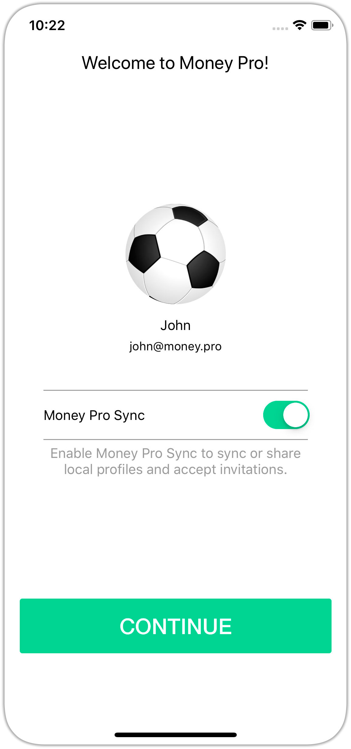 Go to More (or Money Tracker > Preferences for Mac) and tap Money Tracker Account. Turn Money Tracker Sync ON and tap “Continue”.