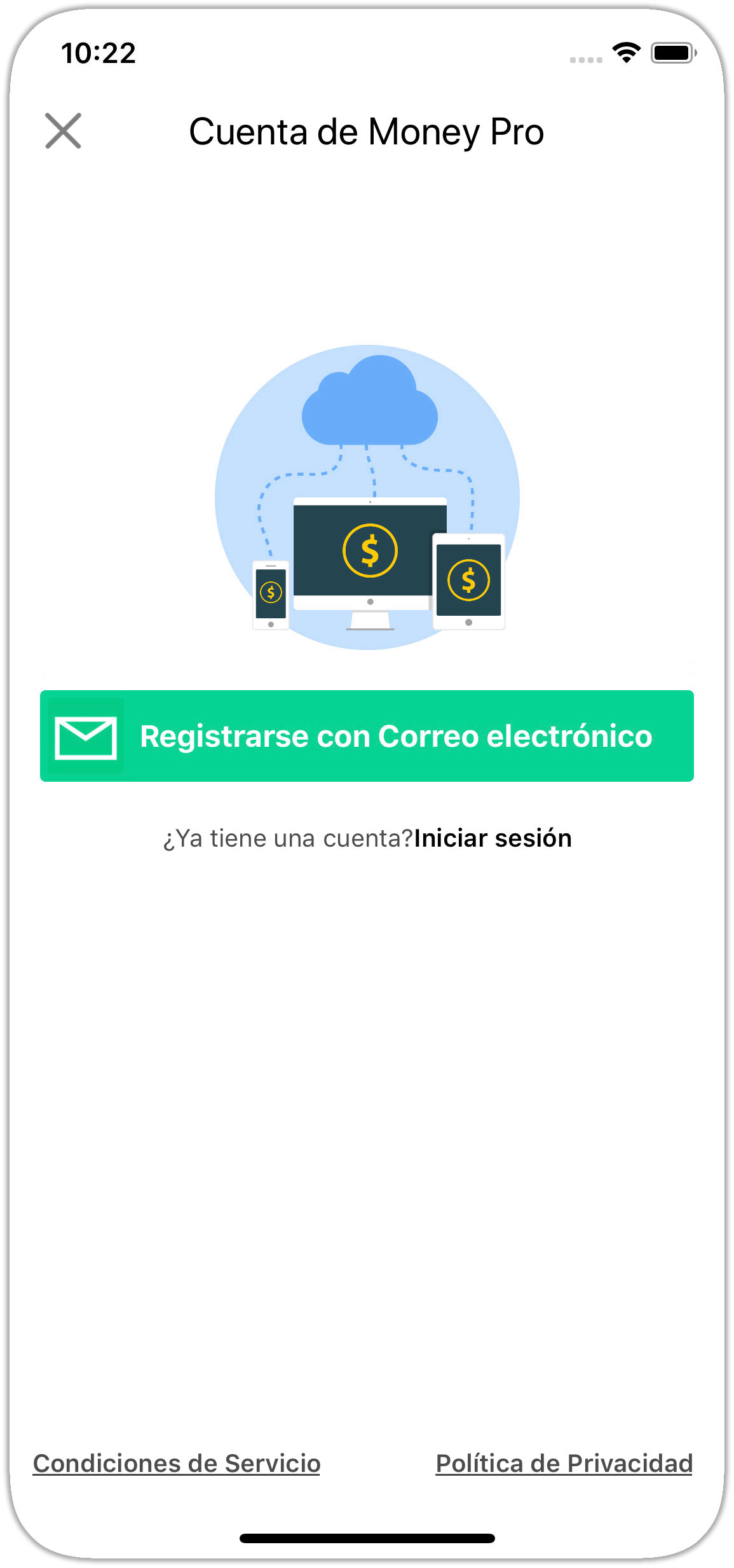 5. Para configurar otro dispositivo (iPhone, iPad, Android, Mac, Windows), vaya a Cuenta de Money Tracker e inicie sesión en la Cuenta de Money Tracker.