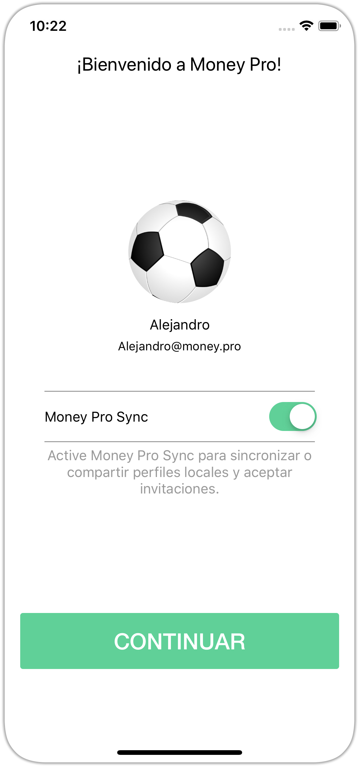 6. Active Money Tracker Sincronización y pulse “Continuar”. Ahora los datos se sincronizarán automáticamente en sus dispositivos.