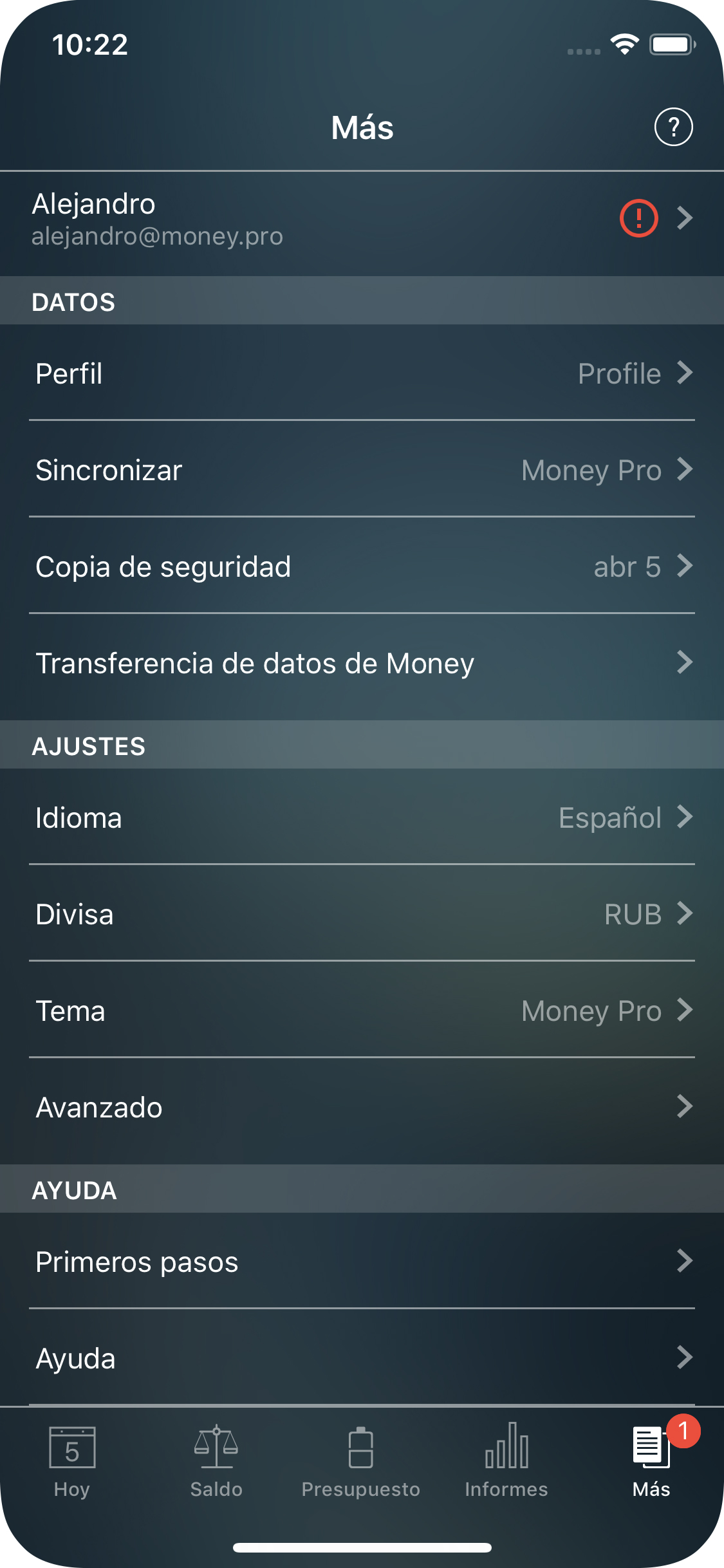 Money Tracker Sincronización: ajustes comunes