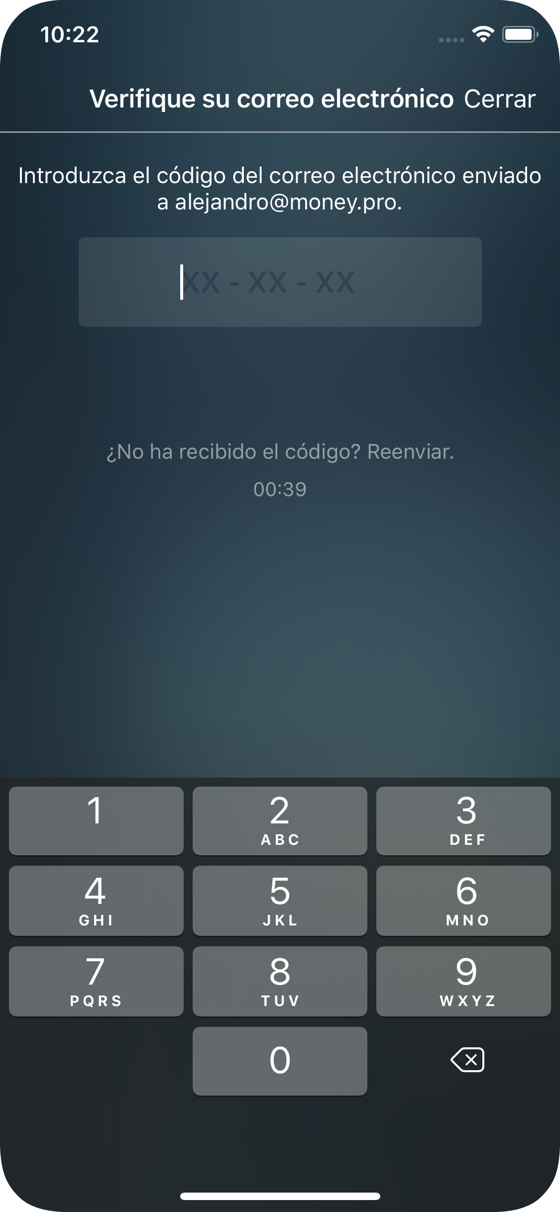 4. Ingrese el código para confirmar su correo electrónico.