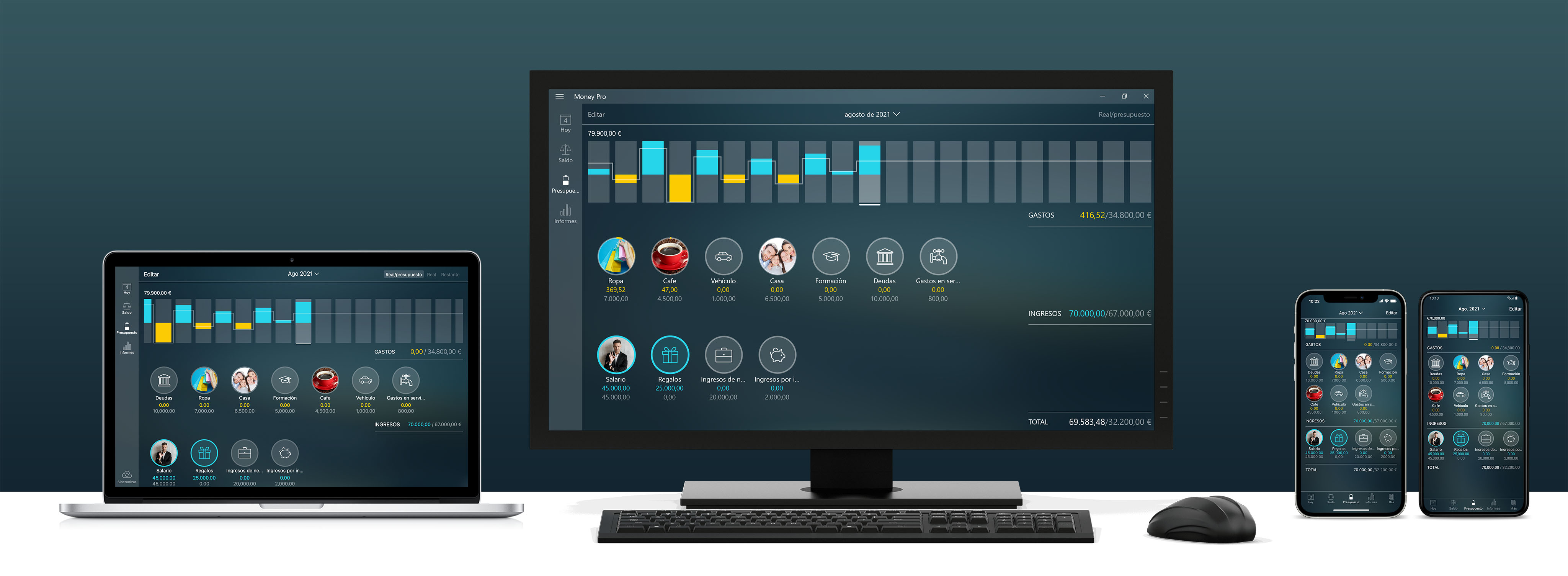 Money Tracker Sincronización (iPhone, iPad, Android, Mac, Windows & Compartir con Familia)