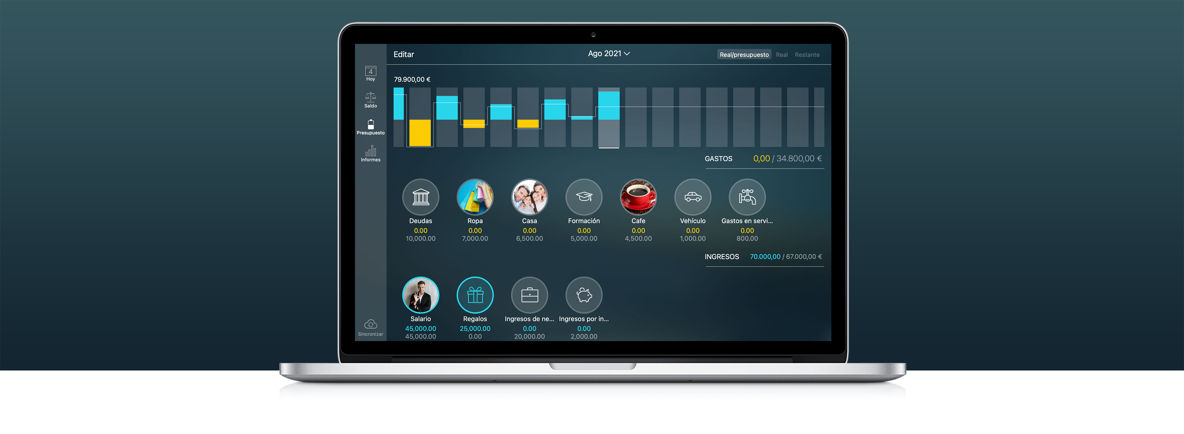 • Personalice las cuentas y categorías con más de 1.500 iconos integrados.