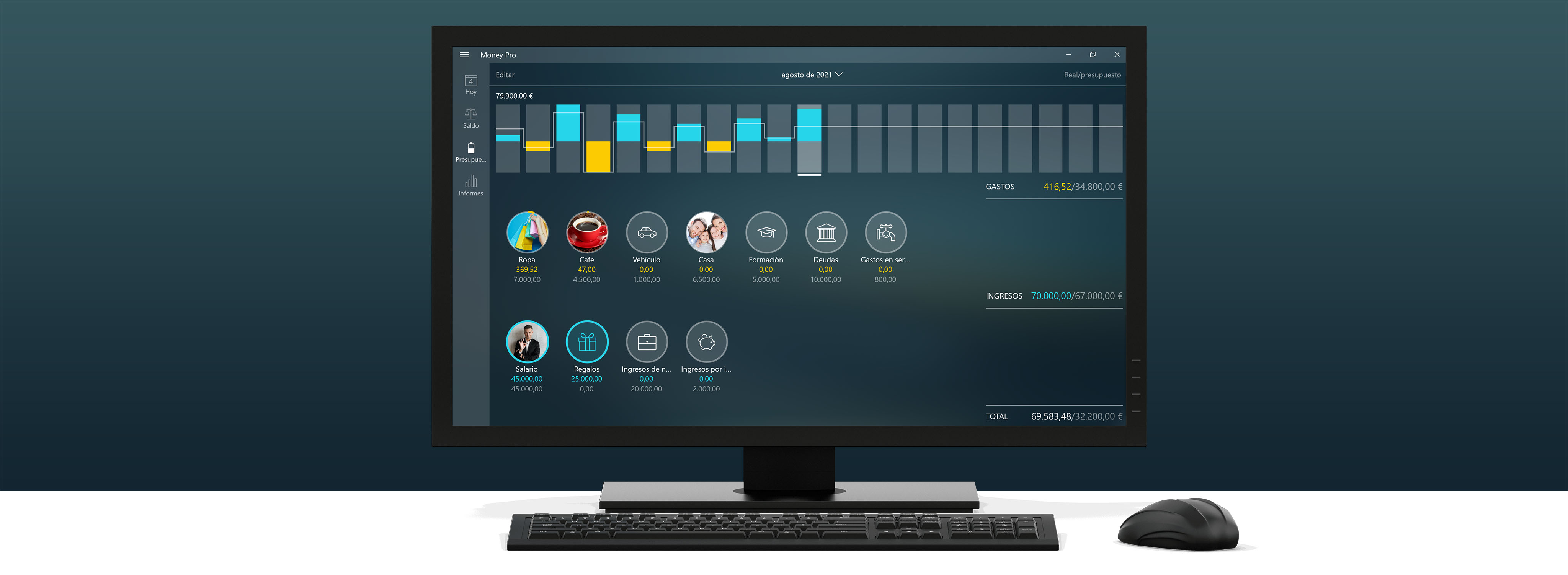 • Personalice las cuentas y categorías con más de 1.500 iconos integrados.